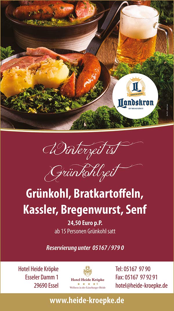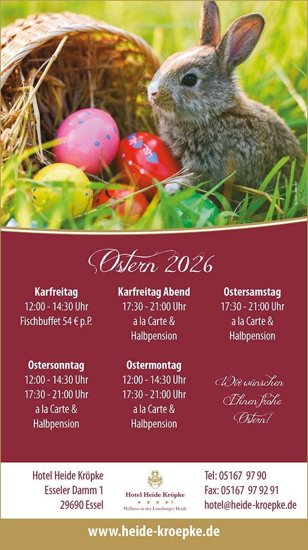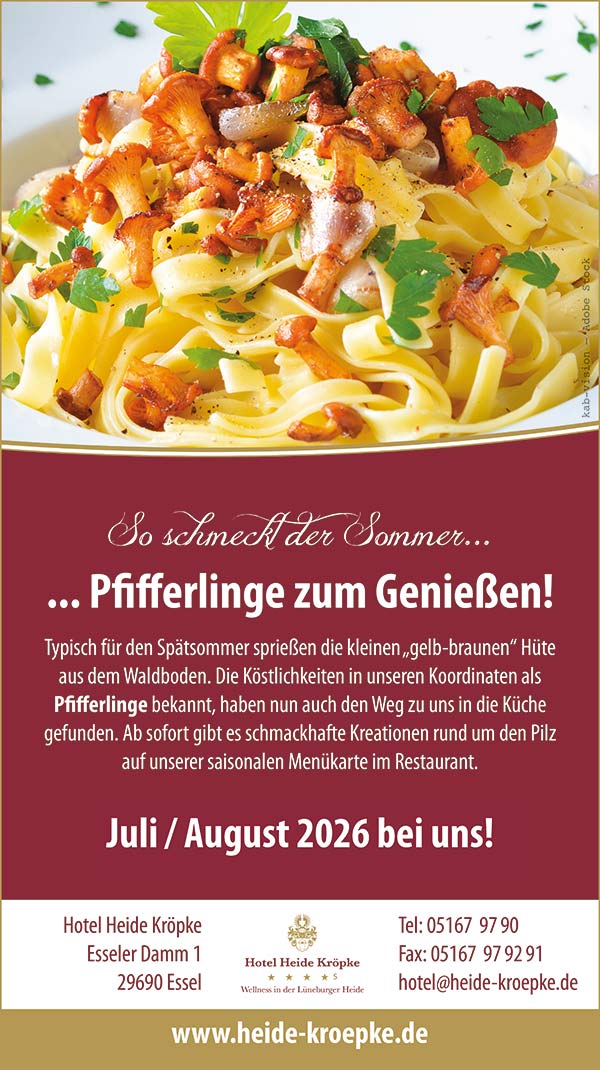 Als Verwöhnhotel in der Lüneburger Heide möchten wir Ihnen immer etwas Neues bieten. Ihre „Verwöhnkur“ beginnt bei uns im Restaurant. Um das Angebot für Sie noch abwechslungsreicher zu gestalten, bieten wir Ihnen regelmäßig spezielle kulinarische Thementage und -wochen. Die Menüs werden von unserem Team meisterhaft zubereitet. Wir freuen uns auf Ihre Tischreservierung unter 05167- 9790! Guten Appetit!